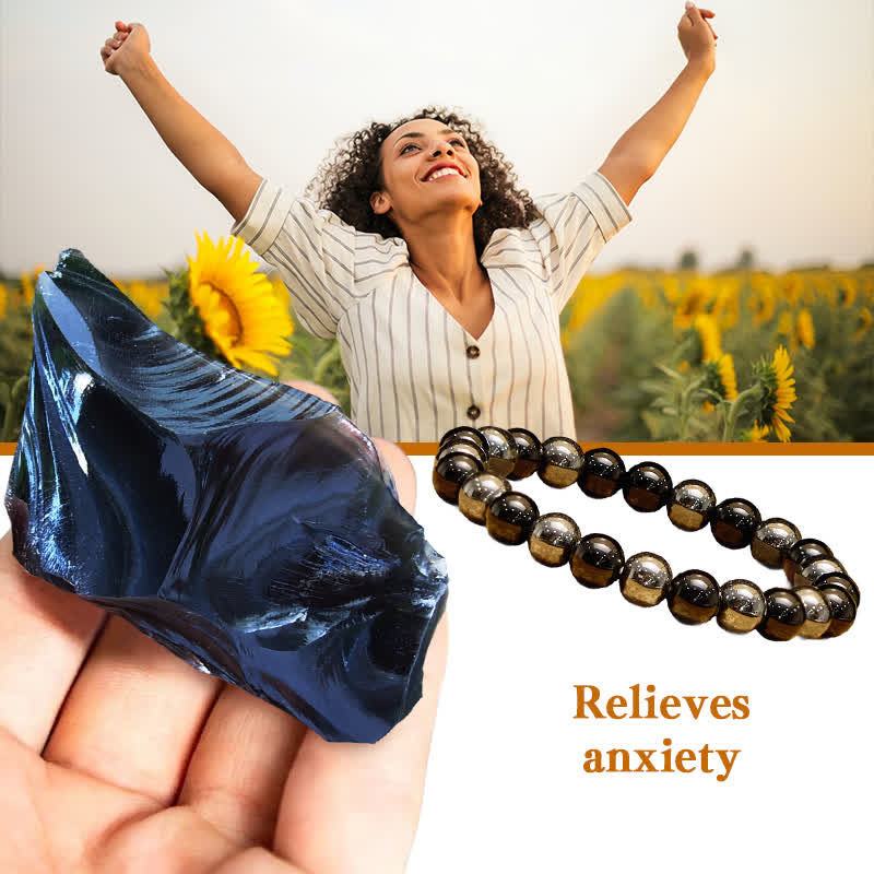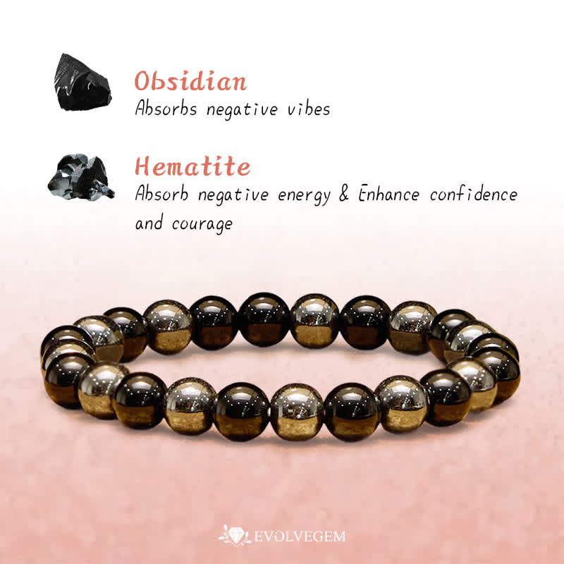- Name: Evolvegem "Stratum Shimmer" Hematite Obsidian Beaded Bracelet