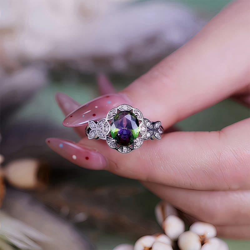 At its center is a mesmerizing alexandrite, its hues shifting like a hidden forest secret. Delicate zircon - encrusted details bloom around it, much like petals unfurling. Set in sleek silver, this ring isn't just an accessory; it's a whispered story of mystery and beauty.