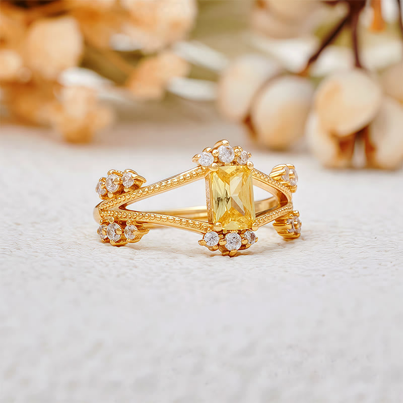 Evolvegem "Golden Radiance" Baguette Cut Citrine Ring