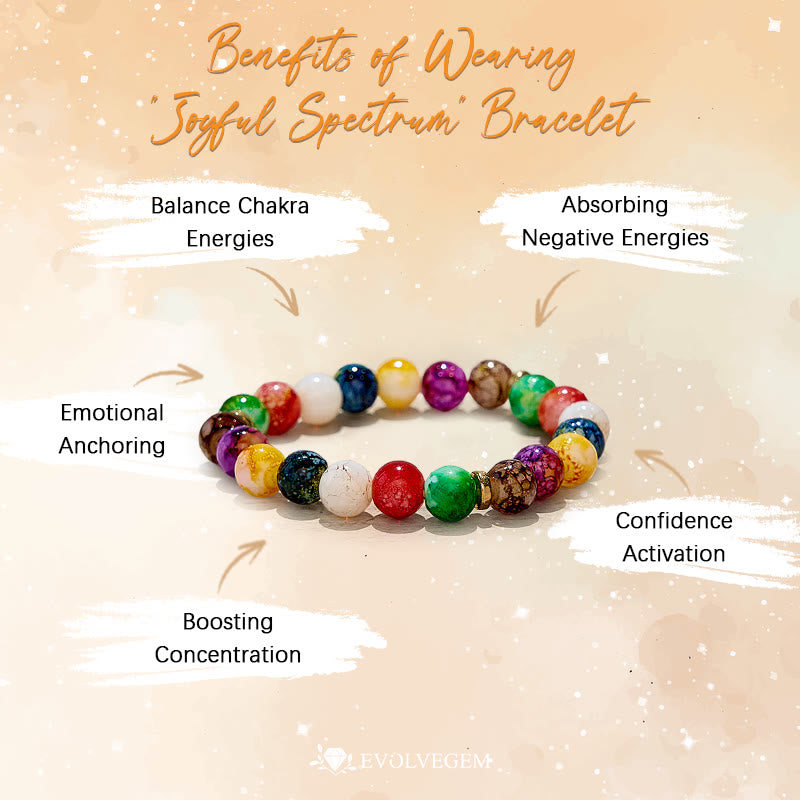 - Name: Evolvegem "Joyful Spectrum" Colorful Agate Chakra Bracelet