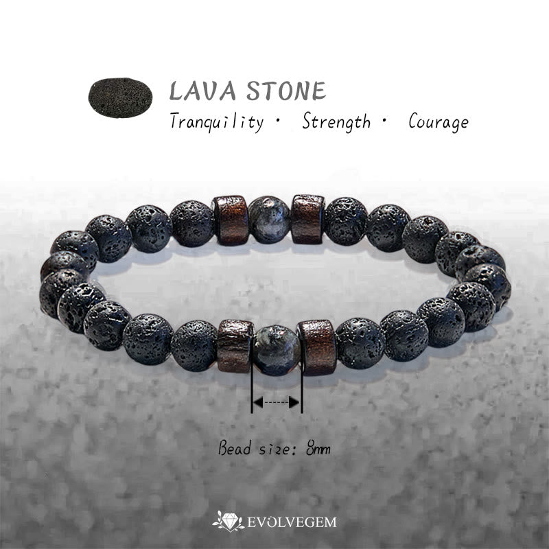 The Lava Stone beads, with their porous and textured surfaces, resemble the rugged terrain of a volcanic landscape. In ancient times, people believed that lava stone held the earth's grounding energy. As you wear this bracelet, it's like carrying a piece of the earth's stability with you, helping you stay centered in the chaos of modern life. Its porous nature is also said to absorb negative energy, acting as a silent shield for your spirit.