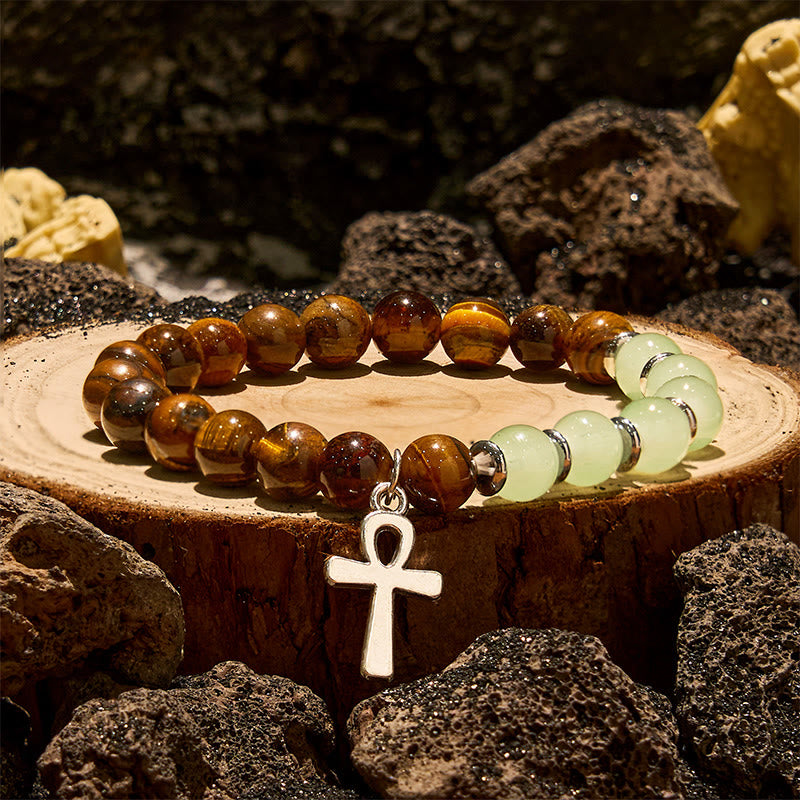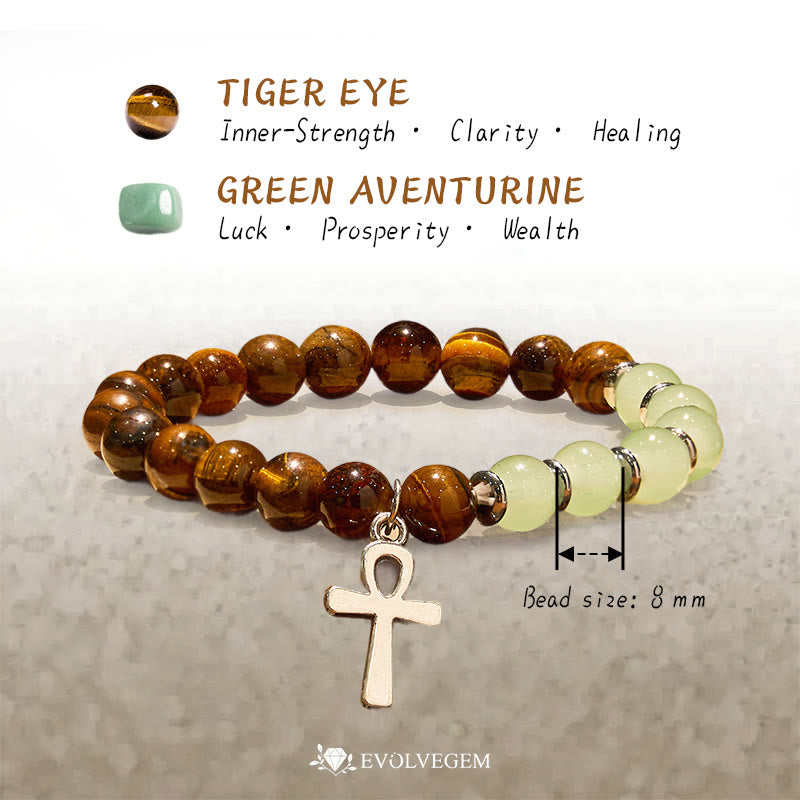 "Sanctuary Grove" Tiger Eye & Aventurine Ankh Cross Bracelet: Wearable Sanctuary for Clarity + Calm