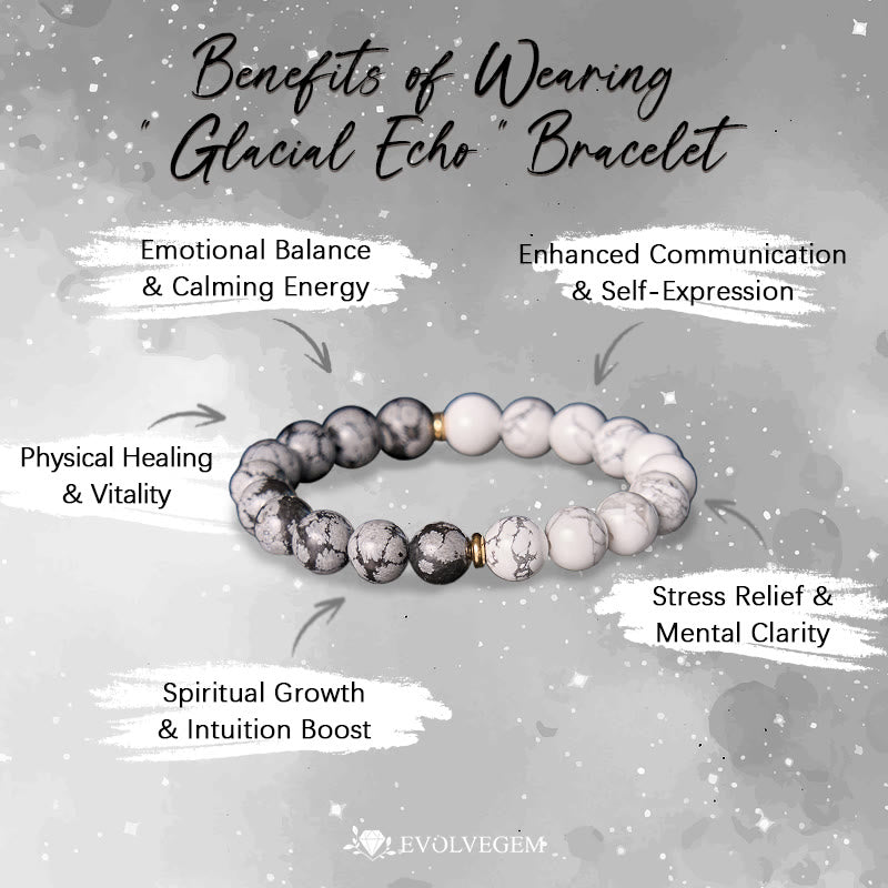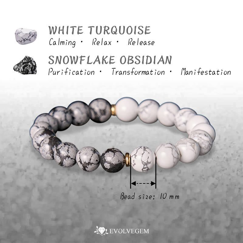 - Name: Evolvegem "Glacial Echo" White Turquoise Snowflake Obsidian Bracelet