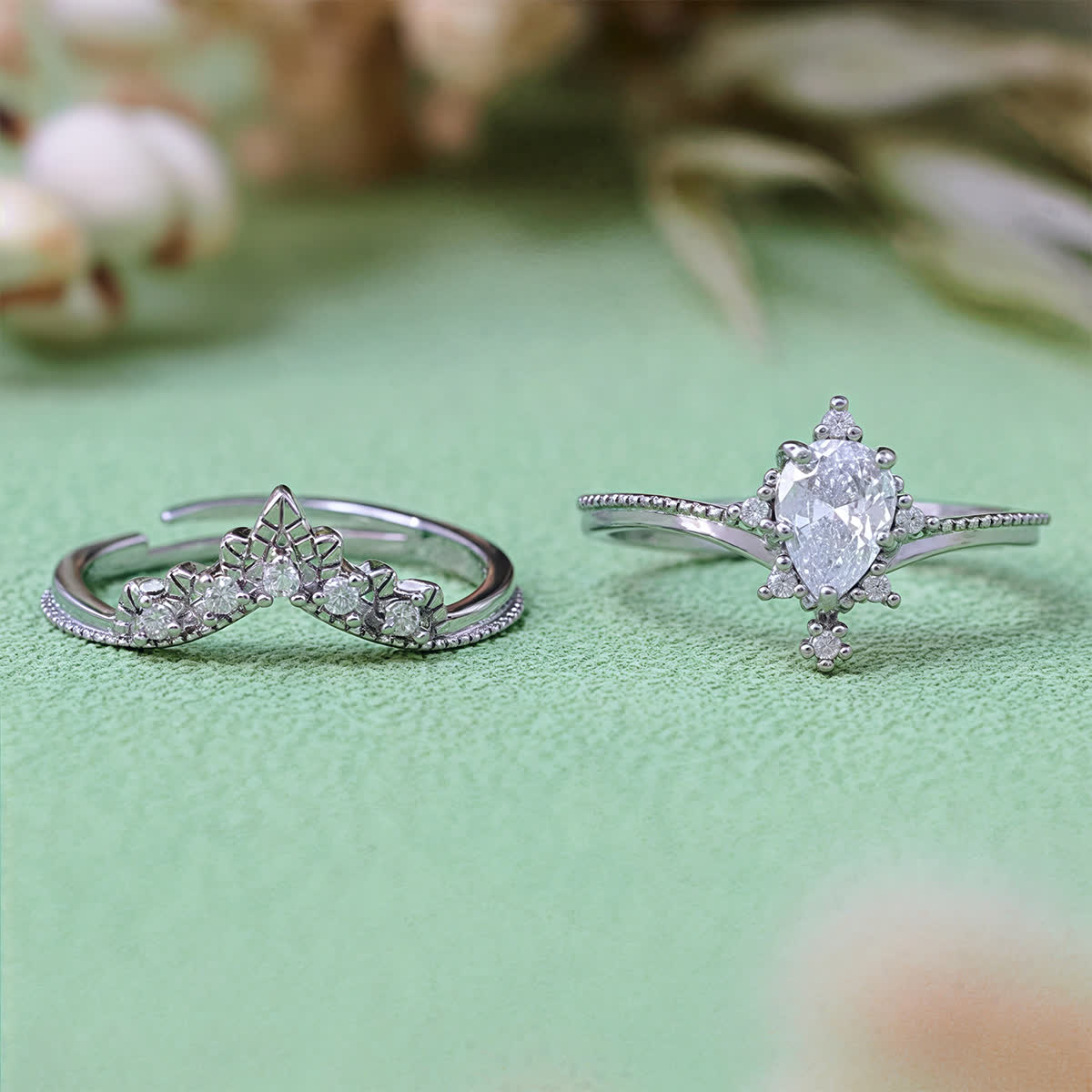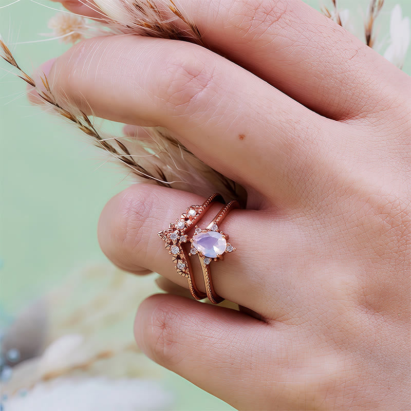Evolvegem "Aurora Opalite" 2Pcs Opalite Simulated Zircon Crown Ring