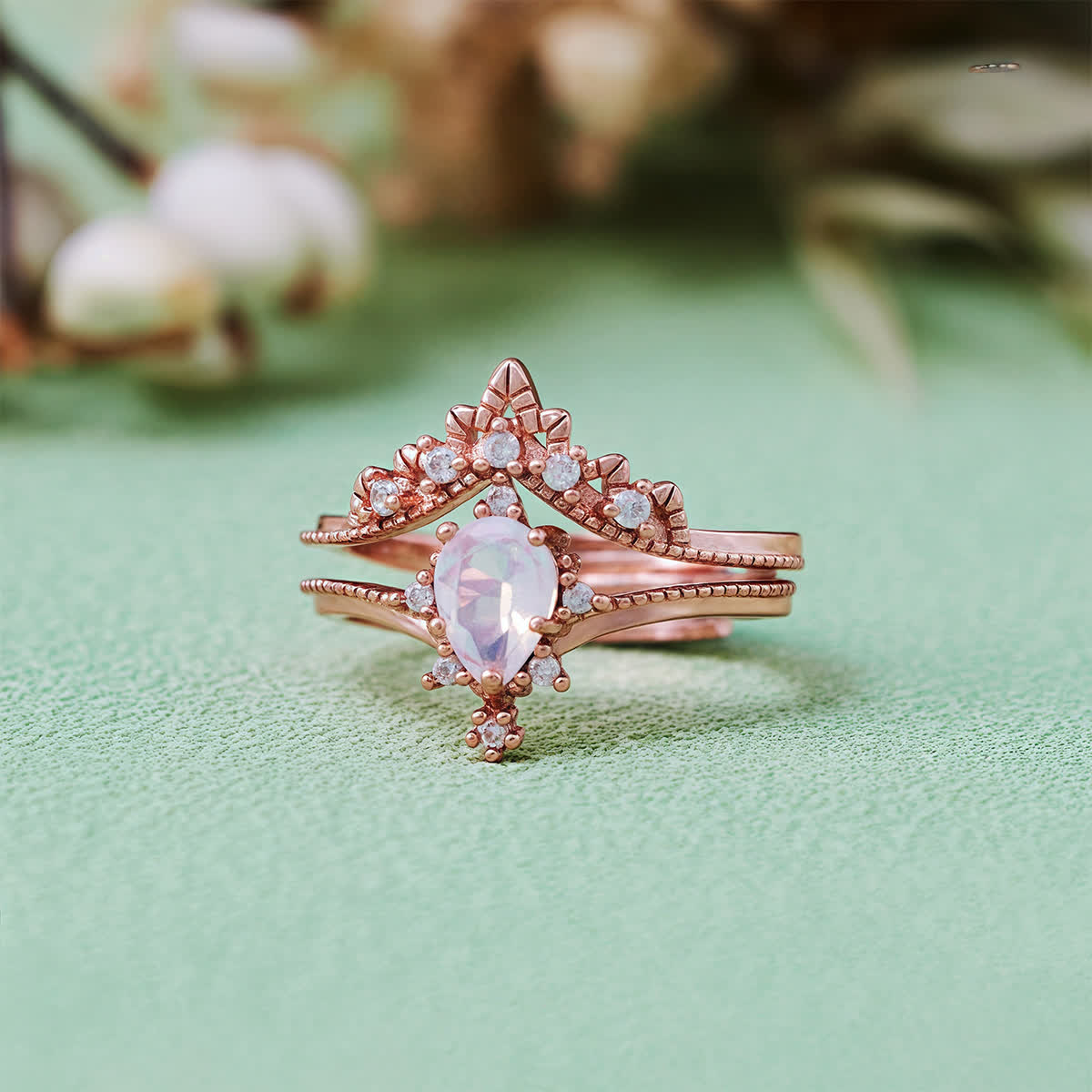 - Name: Evolvegem "Aurora Opalite" 2Pcs Opalite Simulated Zircon Crown Ring