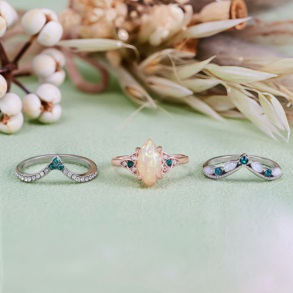 - Name: Evolvegem "Aqua Lumenis" 3Pcs Opal Emerald Ring Set