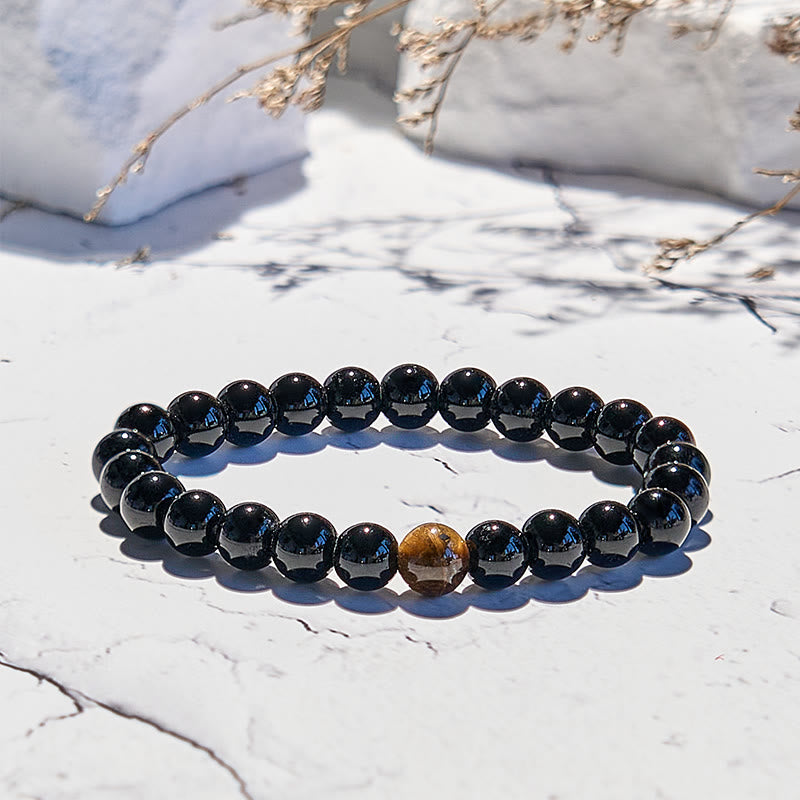 - Name: Evolvegem "Guardian Knight"Natural Obsidian Tiger Eye Beaded Bracelet
