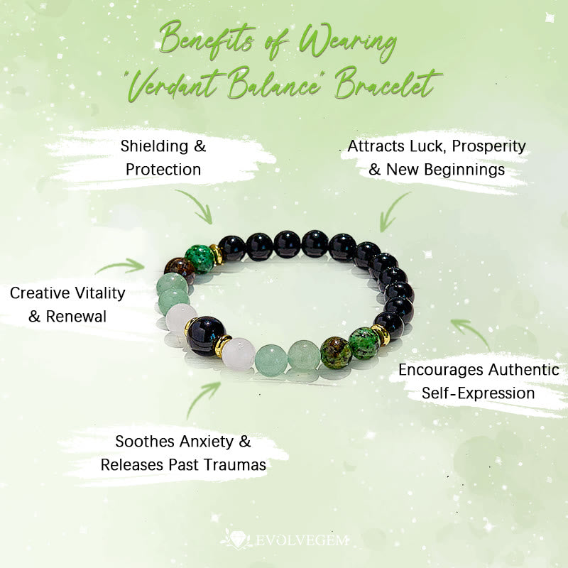 - Name: Evolvegem "Verdant Balance" Green Aventurine Obsidian Bracelet