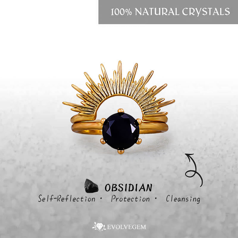 Embodied in volcanic obsidian's primal energy, the Solara Nocturne harmonizes raw earth power with celestial symbolism. The hexagon-faceted obsidian core—born from molten lava and polished to a mirror finish—serves as a grounding talisman, believed to absorb negativity while amplifying self-awareness. Crowned by golden rays erupting like a captured sunburst, the design mirrors dawn piercing through volcanic cliffs, a testament to strength forged in darkness.