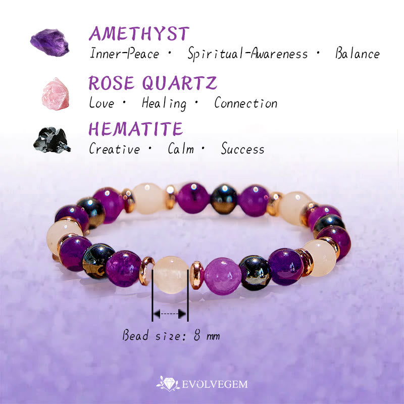 - Name: Evolvegem "Mystic Radiance" Amethyst Rose Quartz Hematite Bracelet