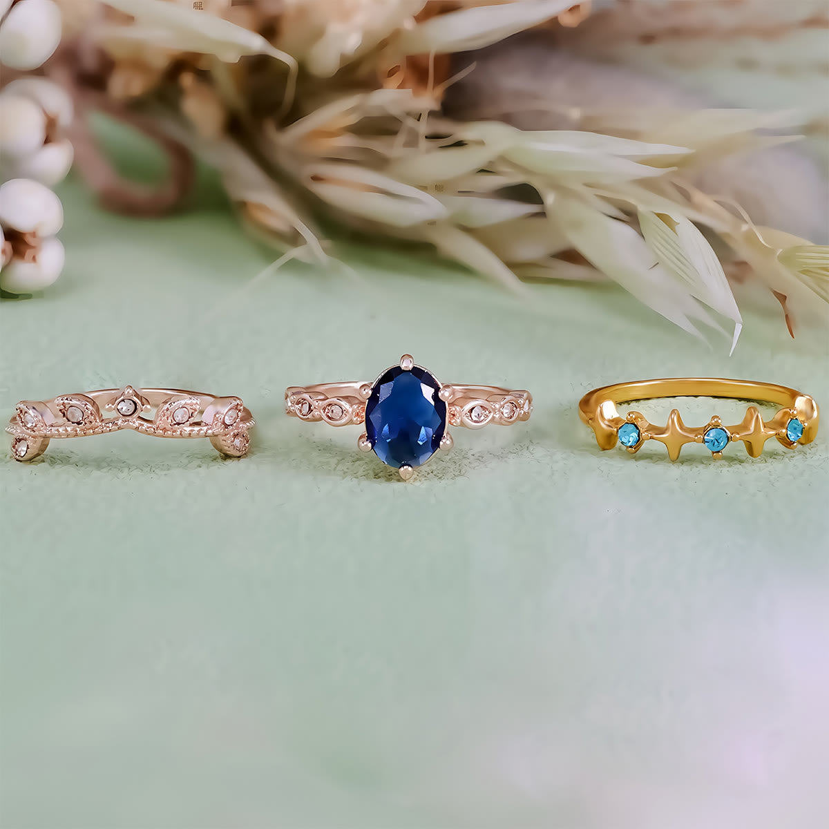 - Name: Evolvegem "Aurelia Azure" 3Pcs Sapphire Ring Set