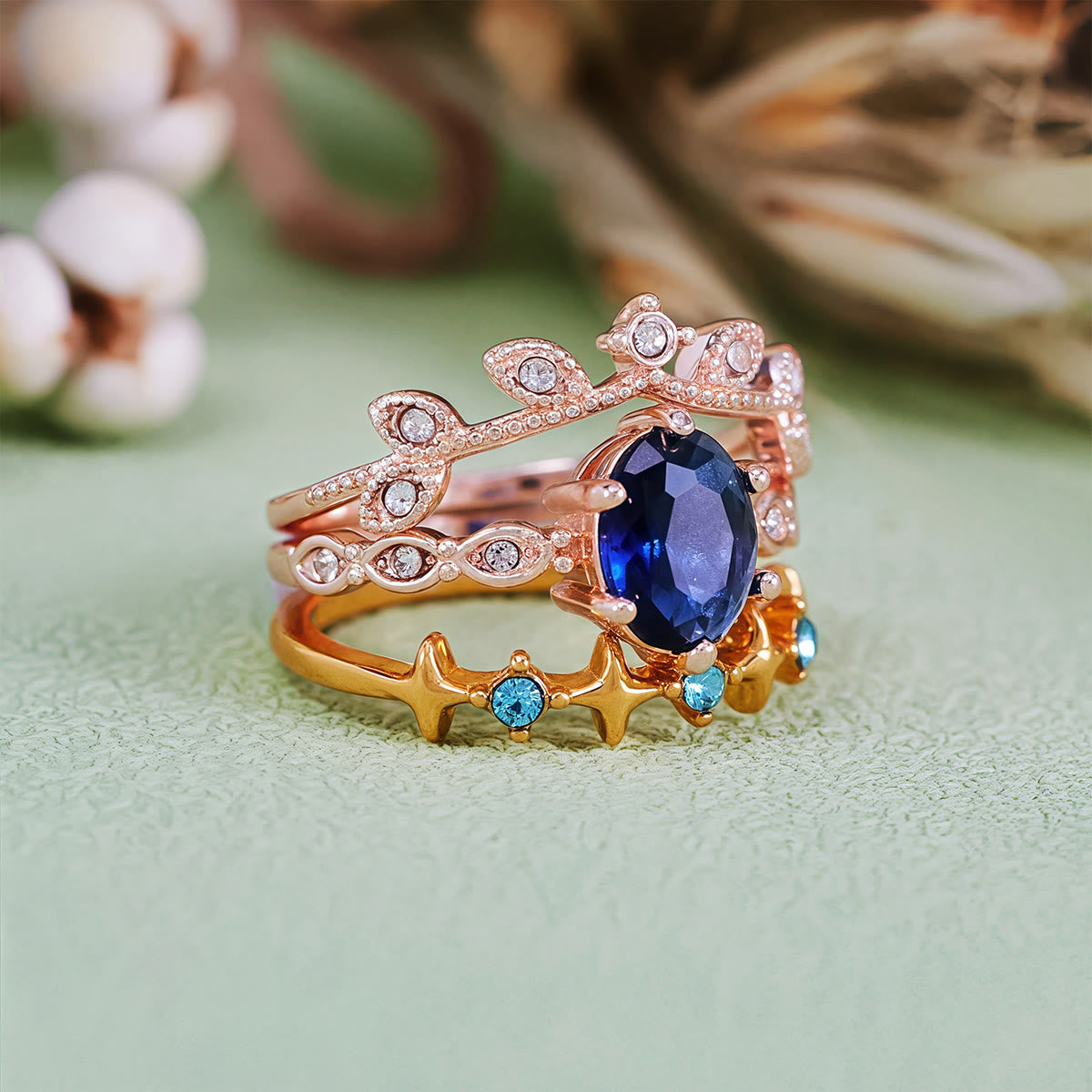 Evolvegem "Aurelia Azure" 3Pcs Sapphire Ring Set