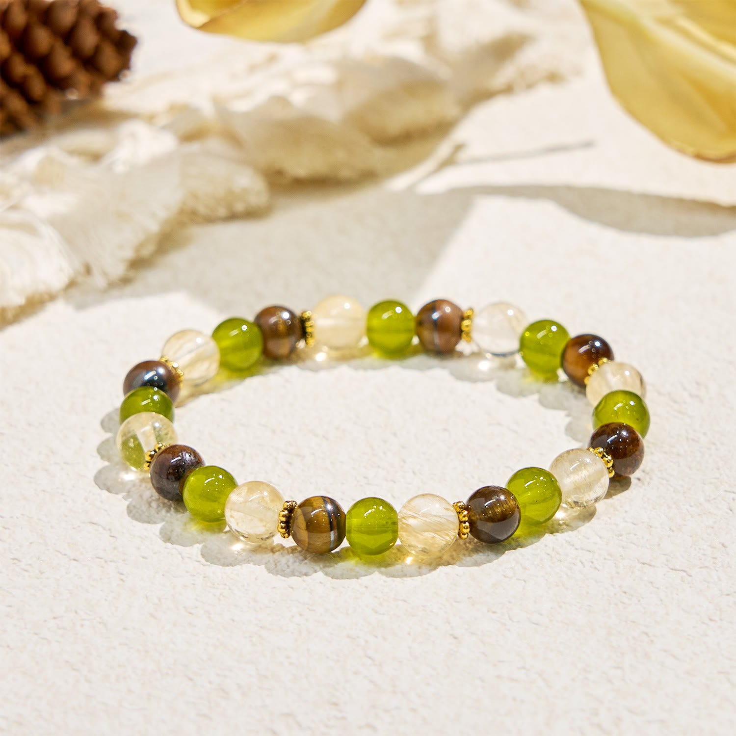 Wear it to align with fortune’s rhythm: Citrine’s warmth at your pulse, Peridot’s vitality against your skin, Tiger Eye’s resolve steadying your stride. It’s a whispered pact with the earth—a promise that prosperity blooms where mindfulness meets nature’s grace.